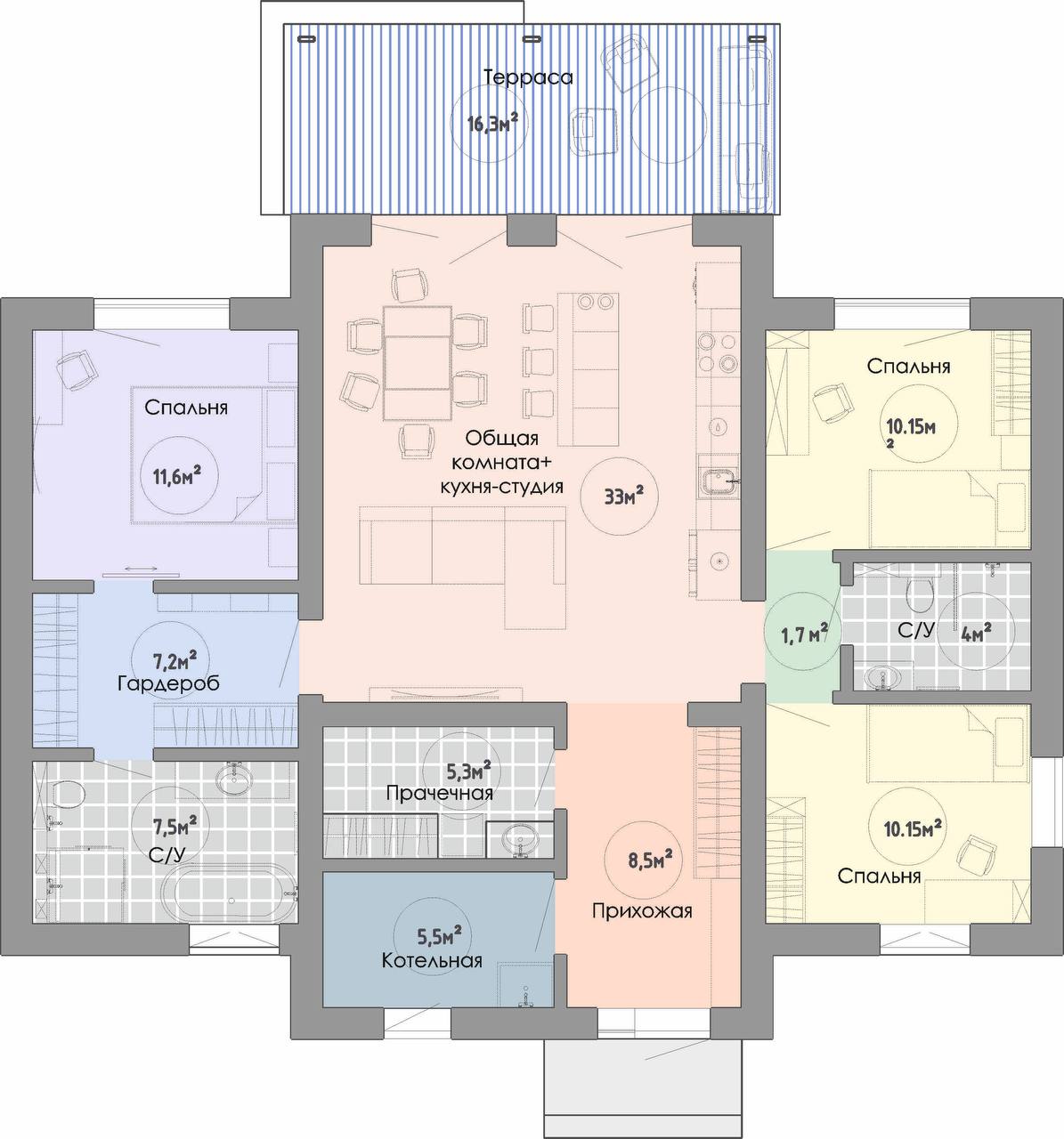 Площадь дома — 245 м² Габариты участка 45×17